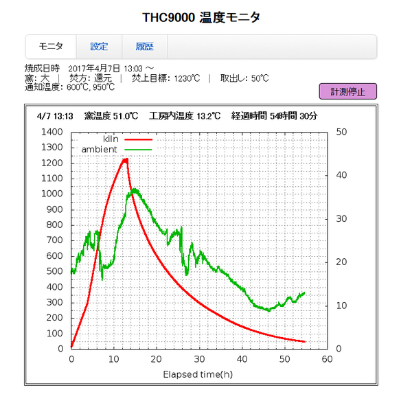 あれば、自室、作陶部屋に居ても、いつでも窯の温度やグラフなどが
